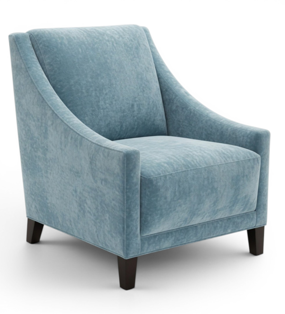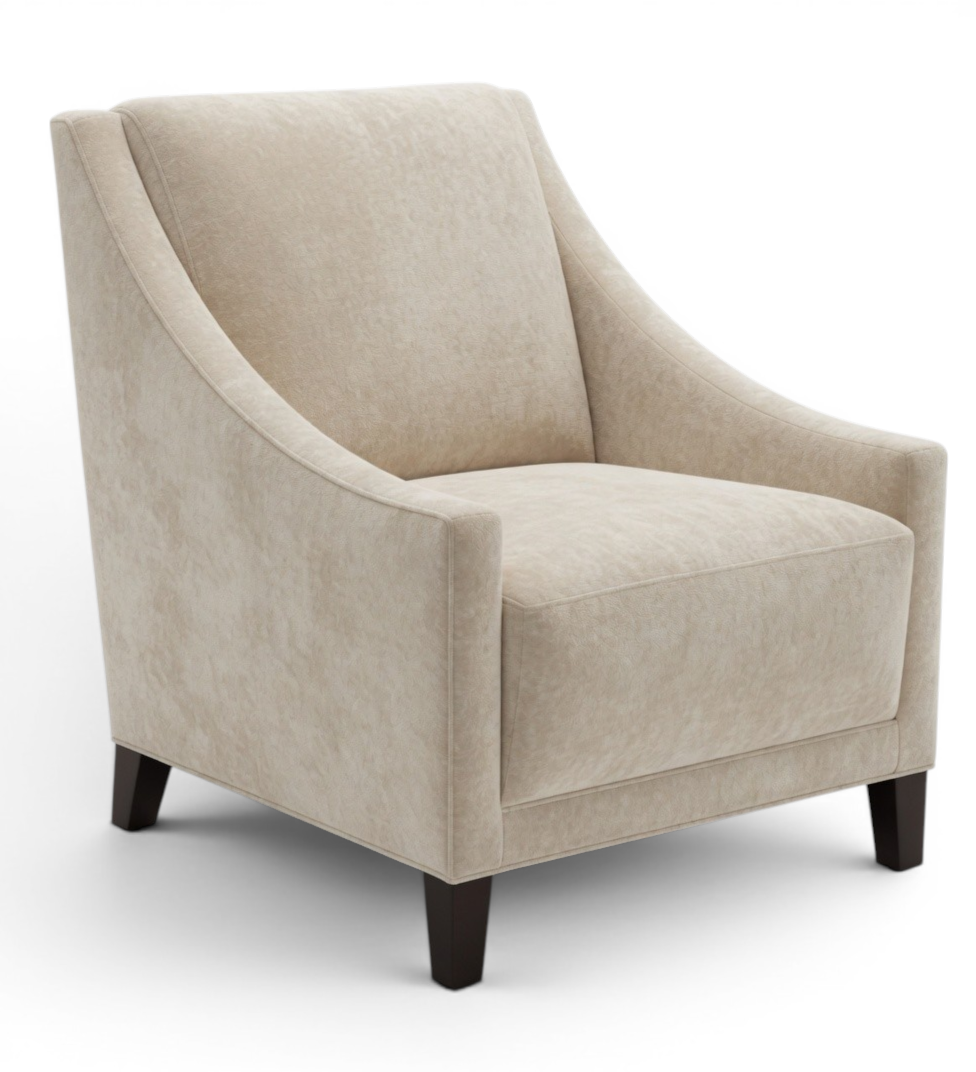 Coordinates w/ Austin pull-up chair, barstool and table. Curved front arm transitions into curved maple headrest. Tight seat with tight back.
