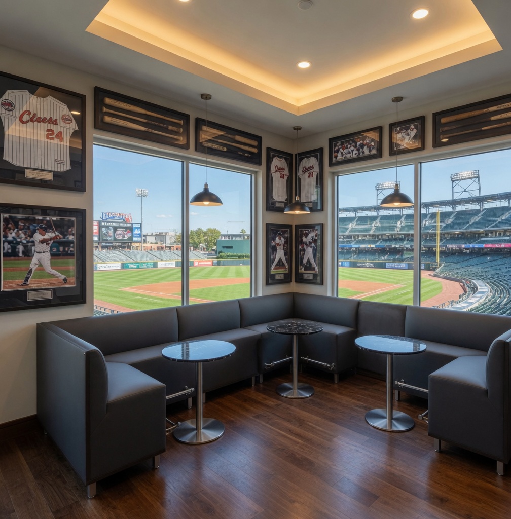 See gallery below for an example rendering in a ballpark suite setting.
