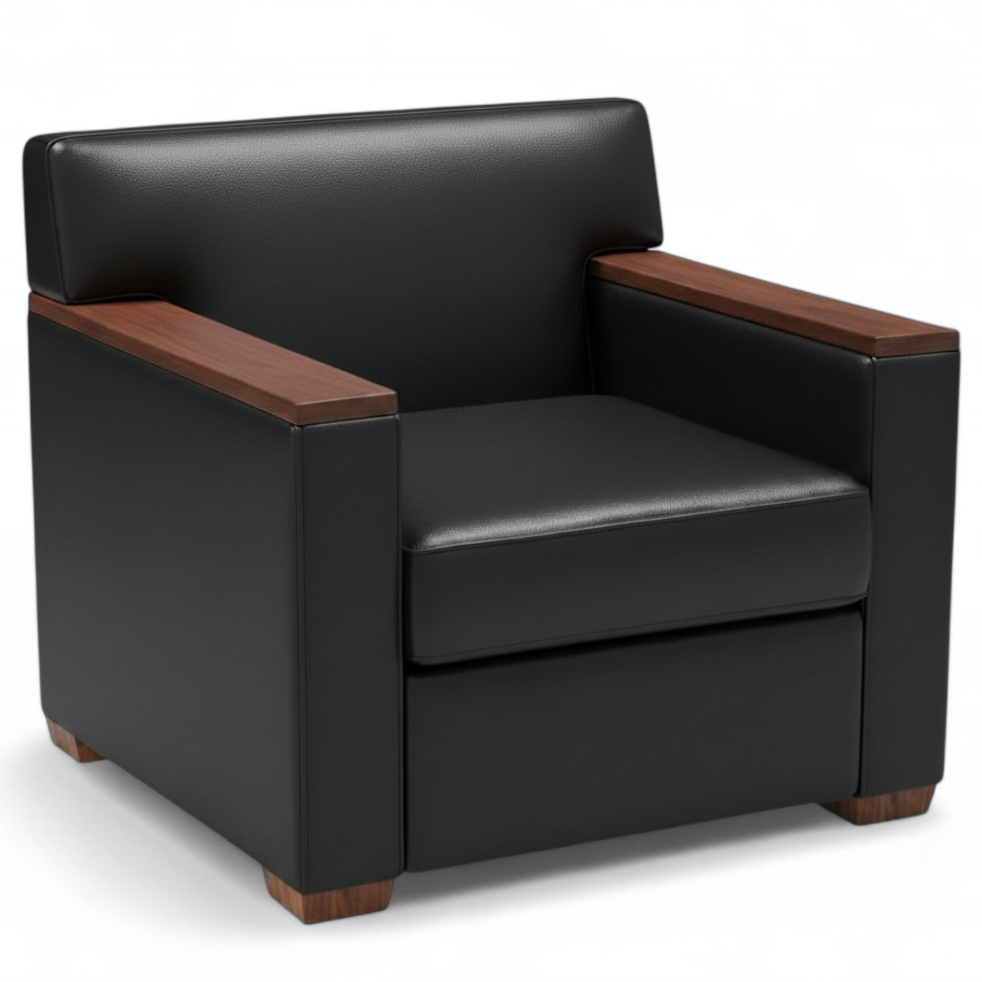 Sleek and simple, the Charlie chair creates an elegant look. The “T” back allows for ample back support and you can pair it with wood arm caps for more contrast.